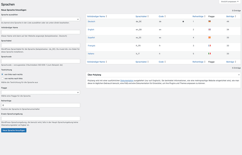 Polylang ist ein WordPress-Plugin zur Erstellung mehrsprachiger Websites. Es ist intuitiv zu bedienen und die Übersetzungsfunktionen sind wirklich umfangreich.