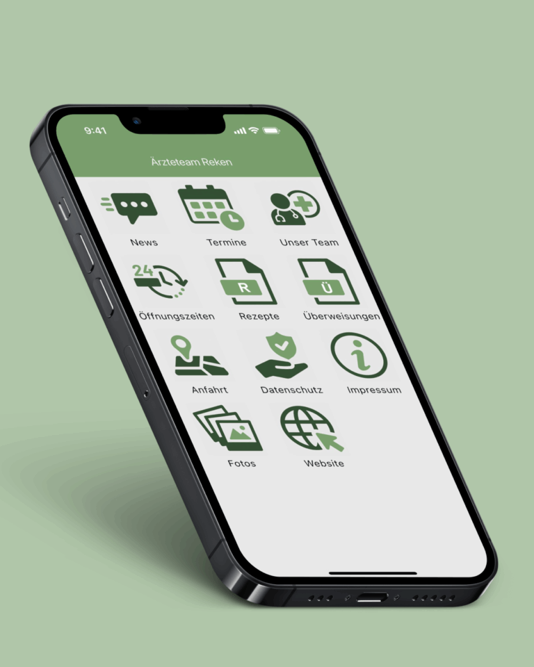 Patienten und Patientinnen freuen sich auf die benutzerfreundliche übersichtliche App der Praxis Ärzteteam Reken. Ganz einfach Termine buchen, Rezepte bestellen, Überweisungen regeln. Alle wichtigen Informationen per Push-Nachricht empfangen. So sieht eine moderne Arztpraxis heute aus.